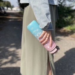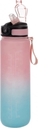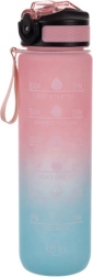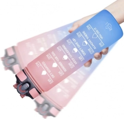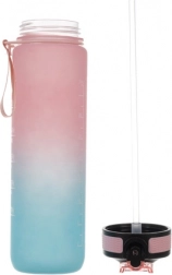Stílusos, 1 literes motivációs vizespalack rózsaszín‑kék átmenettel, amely segít betartani a folyadékbevitelt a időjelöléseknek, a űrtartalom‑skálának és a motiváló feliratoknak köszönhetően. Flip tető biztonsági zárral, puha szilikon csutorával és kivehető szívószállal a kényelmes, döntés nélküli iváshoz, szivárgásmentes a szilikon tömítésnek hála, anyaga könnyű és tartós PP matt felülettel, valamint hordozópánttal rendelkezik.