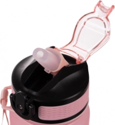 A kivehető szívószálnak és a puha szilikon csutorának köszönhetően kényelmesen, egy kézzel ihat döntés nélkül. A flip tető biztonsági zárral és a szilikon tömítés megakadályozza a véletlen kinyitást és a szivárgást a táskában. A matt felület és a könnyű, tartós PP műanyag könnyen tisztítható; a palack -20 és 80 °C közötti hőmérsékletre alkalmas.