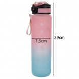 Motivációs vizespalack 1 l szívószállal és ivási időzítővel, rózsaszín‑kék