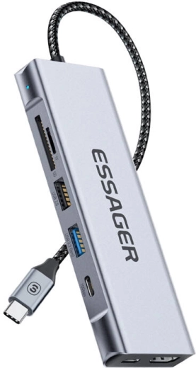 Kiterjedt funkcionalitás és teljesítmény: Az Essager HDMI, USB-C PD 100W, USB-C, USB 3.2 Gen, USB 2.0 és SD/TF foglalatokat kínál. Az adatátvitel sebessége elérheti a 10 Gbps-t, az olvasási/írási sebesség pedig akár 900 MB/s, biztosítva a gyors és stabil fájlátviteleket. A HDMI-port lehetőséget ad a csatlakozásra TV-hez, projektorhoz vagy monitorhoz, ami ideális prezentációkhoz, filmnézéshez vagy munkához nagyobb képernyőn.