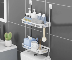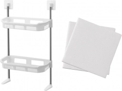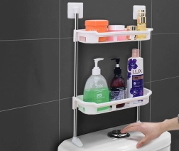 Praktikus, WC fölé szerelhető fürdőszobai polc, amely okosan kihasználja az általában üresen maradó teret. Két tágas polcot kínál kozmetikumoknak és kiegészítőknek, egyszerű szerelést a mellékelt rögzítőelemekkel és stabil szerkezetet elegáns fehér színben.