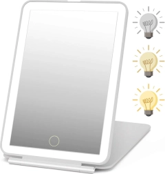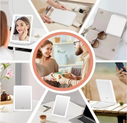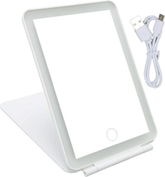 Kompakt és könnyű utazó tükör beépített LED világítással a tökéletes sminkeléshez bárhol. Három színhőmérsékletet kínál (meleg, hideg, kevert), fokozatmentes fényerő-szabályzást érintőgombbal és újratölthető tápellátást micro USB-n keresztül. A védőfedél egyben praktikus állványként szolgál, és a tükör a táskában minimális helyet foglal.