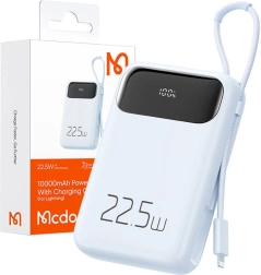 Kompakt Mcdodo powerbank 10 000 mAh kapacitással és 22,5 W gyorstöltéssel, amely megbízhatóan feltölti telefonját és kiegészítőit útközben. Akár 3 eszközt egyszerre tölt, támogatja a PD 3.0, QC 3.0 és 22,5 W SCP szabványokat, áttekinthető LCD kijelzővel rendelkezik, integrált csuklópánttal a könnyű hordozhatóságért, és megfelel a légi közlekedés biztonsági előírásainak.