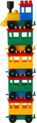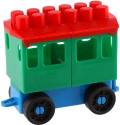 Az építőkészlet világos színű mozdonyt és öt vagont tartalmaz. Ezek a színek felkeltik a figyelmet és ösztönzik a gyermeki kreativitást.