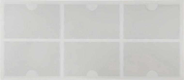 Praktikus öntapadó névjegykártya-zsebek felülről betolható kialakítással, amelyek megóvják a kártyákat és címkéket, öntapadó hátoldallal rendelkeznek a gyors felhelyezéshez sima felületekre, és átlátszóak a tökéletes olvashatóságért. Ívenként 6 db kiszerelésben szállítva.