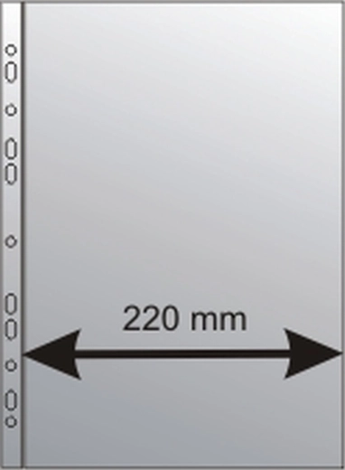 Praktikus és tartós A4-es eurotasak MAXI bővített kapacitással, ideális iratrendezőkhöz. Készült extra erős, 150 mikron vastag PP-ből szemcsés felülettel, amely csökkenti a tükröződést és az ujjlenyomatokat. Fentről tölthető, eurolyukasztással a gyűrűs és karos iratrendezőkbe való egyszerű lefűzéshez.