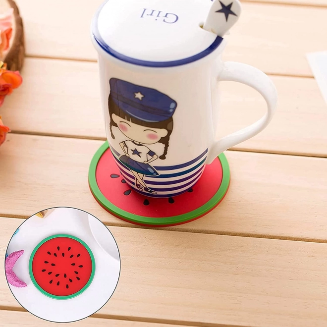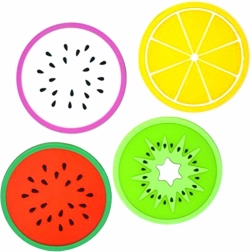 Ezek a gyönyörű alátétek, amelyek a gyümölcs keresztmetszetét ábrázolják, remek kiegészítők lesznek nemcsak a konyhájában. Az alátétek vonzó trópusi gyümölcs formatervezéssel rendelkeznek. Ártalmatlan, mosható szilikonból készülnek, amelynek egyik oldalán tapadó réteg található, hogy ne mozogjanak az asztalon. Többé nem kell aggódnia a párás poharak nyomai vagy karcos asztalok miatt. Mindenki szeretni fogja a saját alátétjét. Ez a készlet nemcsak nagyszerű ajándék, de ideális kiegészítő is az otthonába.