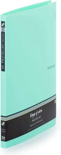 Katalógkönyv Pastelini A4 ideális dokumentumok formátumának A4 bemutatásához és tárolásához. 20 lapot tartalmaz és gyakori megtekintésre tervezték.