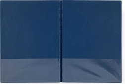 Praktikus A4-es irodai mappa kék színben, klasszikus dizájnnal a dokumentumok áttekinthető tárolásához. Belül átlátszó oldalzsebeket kínál az iratok és promóciós anyagok biztonságos megőrzéséhez, ideális archiváláshoz és prezentációkhoz.