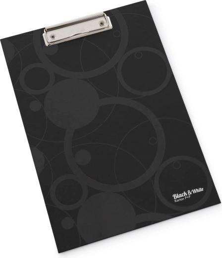 A4-es íróalátét Fekete-fehér egy elegáns és funkcionális kiegészítő az irodai szükségleteihez, amely extra erős kartonból készült fém klippel.