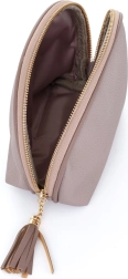 Fedezze fel a praktikus megoldást kisméretű kozmetikai tárgyai számára az utazó, kerek PLUS kozmetikai táskával. Ez a táska, mely minőségi bőrből készült modern mokka színben, stílust és funkcionalitást nyújt egyben: