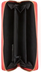 Nagy női pénztárca korallszínű kivitelben. Belül 8 kisebb zseb hűségkártyáknak, 2 nagyobb zseb, 3 elkülönített rekesz készpénznek és 1 cipzáras zseb aprópénznek.