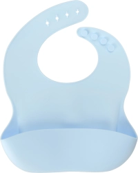 Puha szilikon előke állítható záródással és mély zsebbel, amely megbízhatóan felfogja a morzsákat és a folyadékot, és megóvja a ruhát minden étkezésnél.