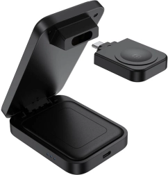 A töltő összecsukható kialakítása lehetővé teszi annak könnyű szállítását. Az okosóra töltésére szolgáló levehető rész különálló egységként használható USB-C csatlakozással.