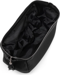 A Holiday kozmetikai táska fekete bőr kivitelben nemcsak stílust, hanem praktikus funkcionalitást is biztosít minden utazónak. A PU anyag használatának köszönhetően, amely valódi bőrt imitál, olyan felületet kap, amely tartós és könnyen tisztítható.