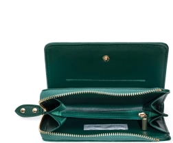 Stílusos kisebb női pénztárca elegáns zöld kivitelben, ideális választás mindennapi szükségletekhez. Kínál vonzó dizájnt és praktikus elrendezést.
