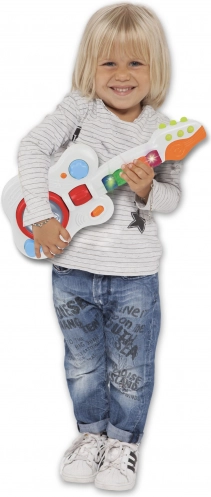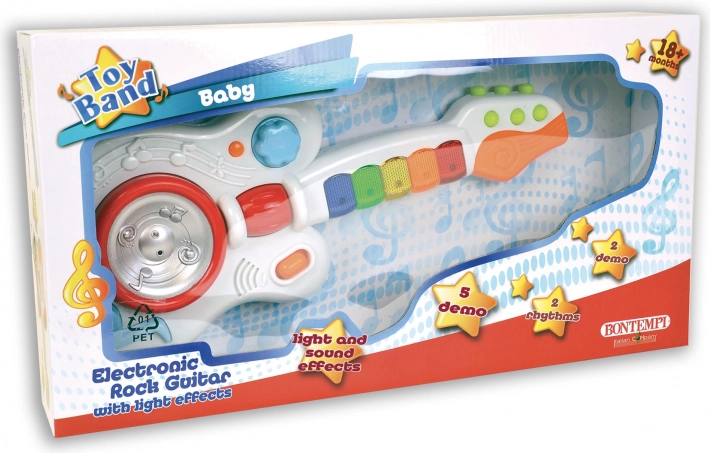 Remek zenei kaland minden gyermek számára a Bontempi gitárral! A gyerekek fejleszthetik zenei képességeiket és közben jól szórakozhatnak az egyszerű kezelhetőség és a látványos fényhatások révén.