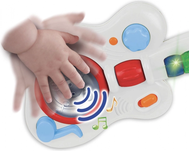 A fényhatások szórakozást és energiát adnak minden játéknál. Az áramellátást 3 R6/AA 1,5V-os elem biztosítja, amelyek nem részei a csomagnak. A gitár 1,5 éves kortól ajánlott, méretei: 17 x 40 x 5 cm.