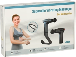 A készlet tartalmaz egy masszázspisztolyt, USB kábelt a töltéshez, kiegészítő markolatot és öt masszázs fejet, mindez kartondobozba csomagolva a könnyű és praktikus tárolás érdekében.