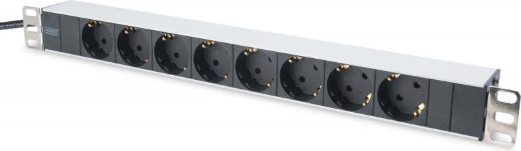A DIGITUS márka kiváló minőségű táplálócsíkja szilárdságot és ellenállóságot biztosít alumínium profiljának köszönhetően. Az elegáns fekete kivitel a rack szekrény professzionális megjelenését nyújtja. Ez a PDU egység 2 méteres tápkábellel van ellátva H05VV-F 3G1,5 mm² típusú, szögletes Schuko dugóval, amely megkönnyíti a telepítést szűk helyeken is. A csomag tartalmaz fém szerelőkonzolokat vízszintes vagy függőleges telepítéshez.