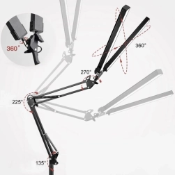 Az állítható kar több síkban forgatható (360 / 225 / 270 / 135 fok), ami növeli a használati rugalmasságot. A szerelés megoldható akár rögzítéssel, akár állványra, ami egyetemes felhasználást biztosít különböző környezetekben, akár otthon, akár irodában van szüksége rá.