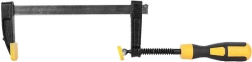 Ez a professzionális szorító A3 acélból készült, ami biztosítja annak szilárdságát és tartósságát. Ideális fafeldolgozó és szerkezeti munkákhoz, ahol hangsúlyt fektetnek a pontosságra és stabilitásra. A praktikus fekete és sárga fogantyú kényelmes fogást tesz lehetővé.