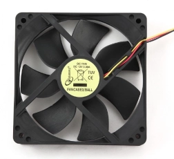 Nagy teljesítményű ventilátor 120x120 mm méretű számítógépházba, 3 tűs csatlakozással, golyóscsapággyal a hosszú élettartamért.