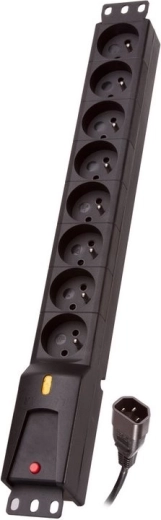 A biztonság a beépített túlfeszültségvédelemnek és a 10 A/250 V automatikus megszakítónak köszönhetően biztosított, amely védi a csatlakoztatott eszközöket a túlterhelés és rövidzárlat ellen. A robusztus fekete ház magas ellenállóképességű poliamidból készült, amely hosszú élettartamot és mechanikai sérülések elleni védelmet biztosít. A kompakt méretek megkönnyítik a szabványos 19" RACK szekrényekbe történő rögzítést.