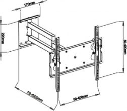 A csuklós kar lehetővé teszi a TV akár 62 cm-re történő kihúzását a faltól, így kényelmesen elfordíthatja a képernyőt mindkét irányba, és bármely helyiségben beállíthatja az ideális pozíciót.