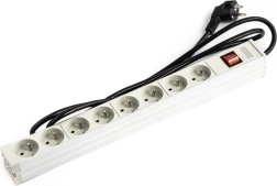 Megbízható PDU sín 19" rack szekrényekhez, nyolc E típusú aljzattal a hálózati elemek, szerverek és AV technika biztonságos tápellátásához. A masszív alumínium ház hosszú élettartamot és hatékony hőelvezetést biztosít, míg a megvilágított központi kapcsoló megkönnyíti a tápellátás vezérlését.