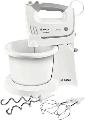Ez a praktikus kézi habverő állvánnyal és forgó keverőtállal stabil és kényelmes habverést, valamint dagasztást biztosít erőfeszítés nélkül. Az ergonomikus kialakítás puha markolattal és nagy gombokkal kényelmet nyújt a mindennapi használat során, míg a csendes és erős 450 W-os motor megbirkózik a könnyű krémekkel és a sűrű tésztákkal is.