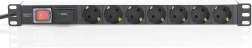 Ez a PDU elosztó hét Schuko típusú aljzattal van felszerelve és függőlegesen vagy vízszintesen szerelhető a rack szekrénybe. Alumínium kialakításának köszönhetően nagy ellenállást és hosszú élettartamot biztosít. A két mellékelt rögzítőkonzol könnyíti a szerelést.