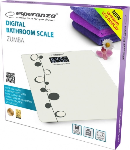 Tartsa kézben testsúlyának alakulását az ESPERANZA ZUMBA mérleggel. Az ultra vékony, 6 mm vastag edzett üveg felület bármely fürdőszobába illik, míg a nagy és takarékos LCD kijelző kiváló leolvashatóságot biztosít. A nagy pontosságú Strain Gauge érzékelők megbízható eredményeket nyújtanak 100 g pontossággal.