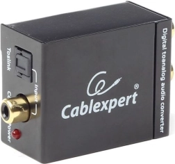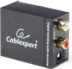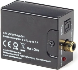 Kompakt átalakító, amely könnyedén alakítja a digitális optikai TOSLINK vagy a koaxiális jelet analóg sztereó RCA (L/R) kimenetté. Ideális modern források, például Blu‑ray lejátszó, régebbi erősítők vagy otthoni audiorendszerek csatlakoztatásához. Egyszerű telepítés, a csomag tartalmaz 5 V DC tápegységet.