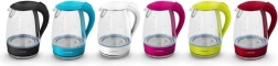 Elegáns, LED megvilágítású vízforraló 1,7 literes űrtartalommal. Ez a vezeték nélküli üvegforraló időtálló dizájnjával és a forrásban lévő vizet megvilágító gyönyörű kék fénnyel tűnik ki, így remek kiegészítője bármely konyhának.