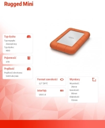 A LaCie Rugged Mini 4TB ideális választás azoknak a felhasználóknak, akik robusztus külső merevlemezt keresnek elegendő kapacitással és gyors adatátvitellel. A lemez úgy van tervezve, hogy ellenálljon a leesésnek akár 1,2 méteres magasságból, 1 tonnás nyomásnak és ellenáll az esőnek és pornak. Ideális terepen való használatra.