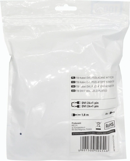 DVI-D kábel számítógép csatlakoztatásához monitorhoz vagy projektorhoz. Kiváló képminőség az aranyozott csatlakozóknak és a teljesen árnyékolt rézvezetéknek köszönhetően.