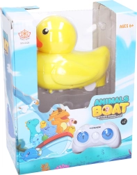 Ez a RC kacsácska ideális játék a vízi játékokhoz, amely örömet okoz nemcsak a gyerekeknek. A 2,4 GHz-es frekvencián történő irányításnak köszönhetően kiváló kezelhetőséget és egyszerű kormányzást kínál. A távirányító két gombbal rendelkezik, amelyek előre mozgást és kanyarodást tesznek lehetővé.