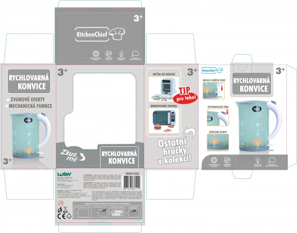 Ezzel a gyermek vízforralóval gyermekeid valódi házigazdának érezhetik magukat. Fény- és hanghatásokkal van felszerelve, melyek egy igazi vízforralót utánoznak. Ez a játék új szintjét nyújtja a valóságnak:
