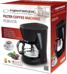 A Esperanza Robusta kávéfőző kényelmet és hatékonyságot hoz a konyhájába. A ciklus befejezése után 40 perccel automatikus kikapcsolással rendelkezik, ami biztonságot és energia-megtakarítást biztosít. Az állandó, többször használható szűrőnek köszönhetően csökkenti a használati költségeket.