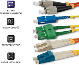 A LC/UPC–LC/UPC csatlakozók biztonságos bepattintható mechanizmusának köszönhetően könnyű a telepítés, stabil a kapcsolat és kiváló a jelminőség. Az optikai vezeték immunis az elektromágneses zavarokra, nem okoz szikrázást, és biztonságos a működés igényes környezetben.