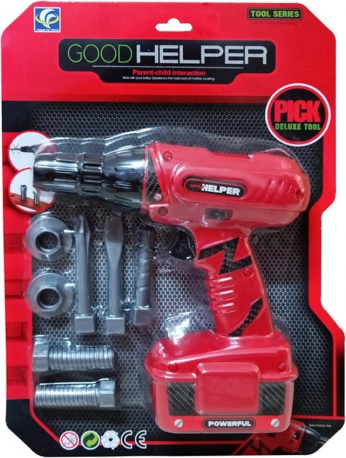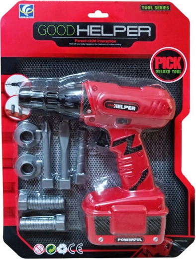 Ez a készlet tartalmaz egy valósághű akkumulátoros fúrógépet, amely nemcsak úgy néz ki, mint az igazi, de gombnyomásra forog és hiteles fúrás hangokat ad ki. Tartalmaz cserélhető fúrószárakat és csavarokat, ami növeli a játék valósághűségét.