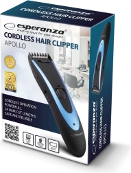 Vezeték nélküli hajvágó ESPERANZA Apollo a gyors és kényelmes otthoni nyíráshoz. Akár 24 vágáshosszt kínál 1,5–24 mm tartományban, ergonomikus kialakítással és egyszerű kezeléssel. Takarítson meg időt és pénzt, és készítsen precíz frizurát és szakállformázást bármikor.
