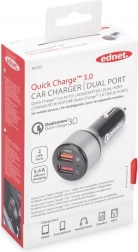 Kompakt autós töltő Qualcomm Quick Charge 3.0 technológiával, amely lehetővé teszi akár két eszköz gyors töltését egyidejűleg. A két USB port (QC 3.0 + intelligens töltés 2,4 A) automatikusan felismeri a csatlakoztatott telefont vagy tabletet, és optimális áramot biztosít számára. A széles, 12–24 V-os bemeneti tartomány, a túlfeszültség, rövidzárlat, túlterhelés és túlmelegedés elleni védelem, valamint a praktikus LED jelzés megbízható útitárssá teszik ezt a fekete–ezüst töltőt.