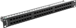 A patch panel lehetővé teszi a kábelek hatékony elrendezését és kezelését a 48 port kategória 6 révén.