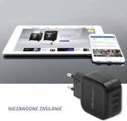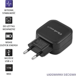 A 3.4A teljesítményű töltő lehetővé teszi akár három eszköz egyidejű töltését, beleértve az okostelefonokat, tableteket, GPS-navigációkat és egyéb kompatibilis készülékeket. Minden USB port különböző típusú kábeleket támogat. Magas minőségű anyagokból készült, így biztosítva biztonságos és hatékony töltést. Könnyű, mégis masszív, modern dizájnnal és alacsony energiafogyasztással.