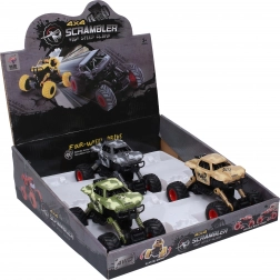 Szórakoztató terepjáró autó felhúzós meghajtással a dinamikus vezetéshez bármilyen terepen. Masszív kivitel, működő rugózás és kompakt méret: 15 × 9 × 9,3 cm. Elérhető 3 színváltozatban – zöld, sárga, szürke.