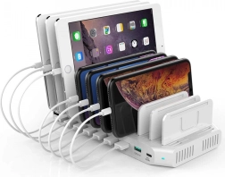 Felejtse el a kábelrengeteget és az elveszett töltőket. A multifunkciós, 10 USB-portos töltőállomás egyszerre tölti az okostelefonokat, tableteket, órákat, e-olvasókat és powerbankokat. Két port Quick Charge 3.0 támogatással a lényegesen gyorsabb töltésért, a többi port pedig akár 2,4 A kimenetet biztosít.