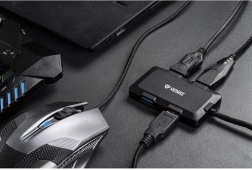 Az USB hub 4 további USB porttal bővíti ki számítógépét, lehetővé téve perifériák, például egér, billentyűzet vagy külső merevlemezek csatlakoztatását. Maximális töltőáramot 2,4 A kínál egy porton, külső áramforrás használata esetén (nem tartozék).