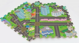 Ez a városmintás habszivacs puzzle szőnyeg játékos és biztonságos környezetté varázsolja a szobát. A puha EVA hab elnyeli az ütéseket, szigeteli a padló hidegét, és kényelmes helyet biztosít mászáshoz, üléshez és az első lépésekhez.